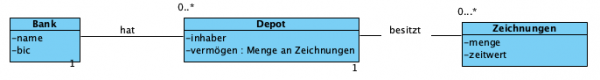 - Ein Domänenmodell wird durch kleine Teilmengen der UML-Klassendiagrammnotation erstellt