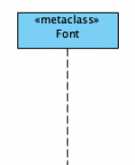 Dann gibt es noch Metaklassen, diese werden wie die oben stehenden Beispiele mit einer Box und einer Lebenslinie angegeben, jedoch ist dies dann eine Instanz einer Metaklasse. In meinem Beispiel ist das die Klasse Font, oder genauer gesagt, Font ist eine Instanz der Klasse Class und somit eine Instanz dieser Metaklasse. Leichter ist dies anhand folgendem äquivalenten (Java-) Code zu verstehen: